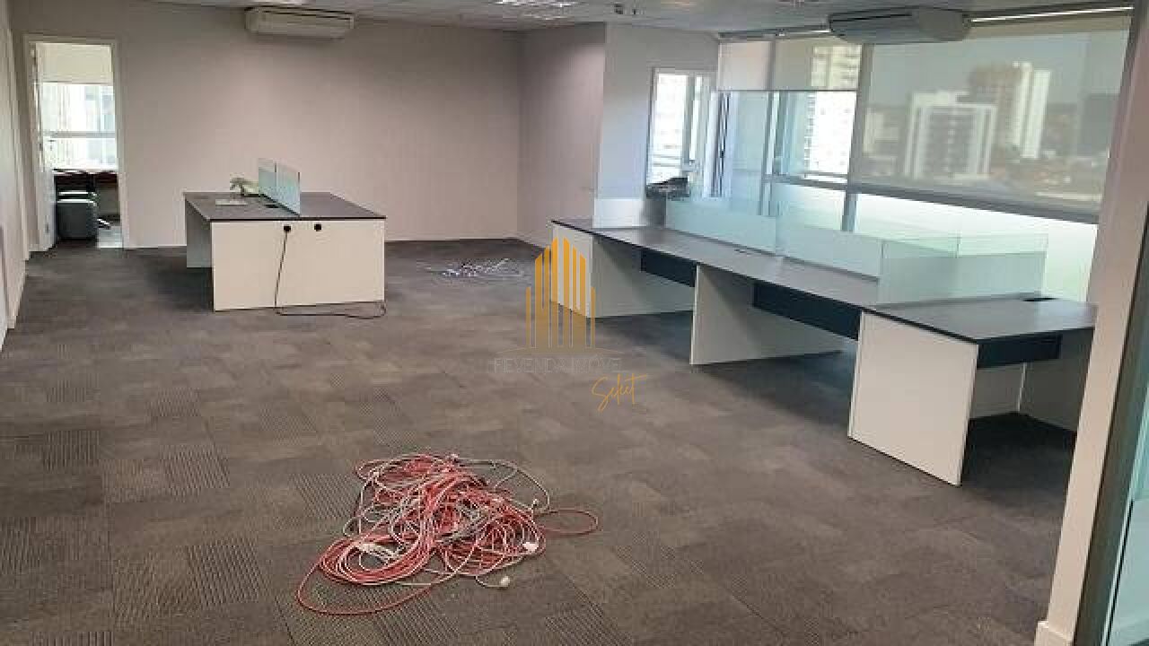 Está totalmente mobiliado e decorado. Tem piso elevado, ar condicionado e cabeamento nível 1. O edifício tem gerador próprio com 12 horas de autonomia e 4 elevadores atendem o andar.
